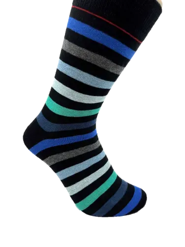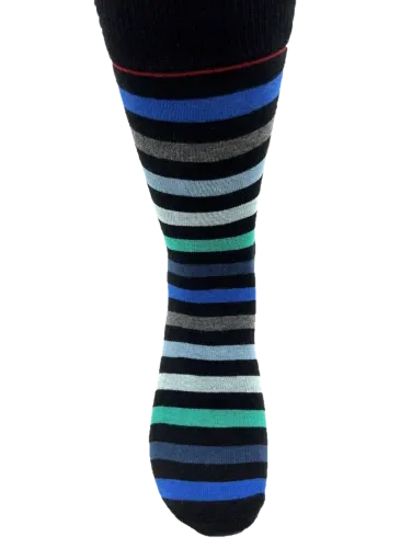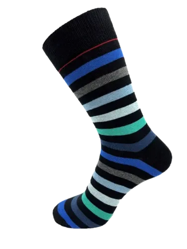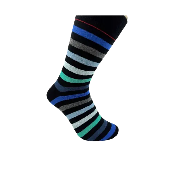 Oplev magien ved farver med vores Magi Striber strømper. Disse strømper, designet til størrelserne 40-46, kombinerer elegance og livlighed med deres flerfarvede striber. Med en harmonisk blanding af blå, grøn, sort, grå og en tynd rød stribe i toppen, er Magi Striber strømperne det perfekte valg for dem, der ønsker at tilføje et sofistikeret og unikt element til deres outfit.