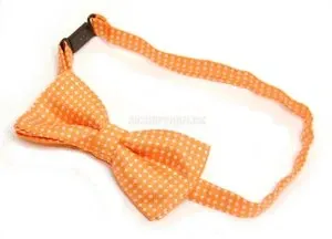 Orange drengebutterfly med flotte hvide prikker, dybt vævet, meget smuk og klar i farven - så har din dreng butterfly til den næste festivitas og kan virkelig matche de voksne i charme og udstråling, hvad enten han skal bruge børne butterfly til fødselsdag, bryllup eller til en konfirmation.