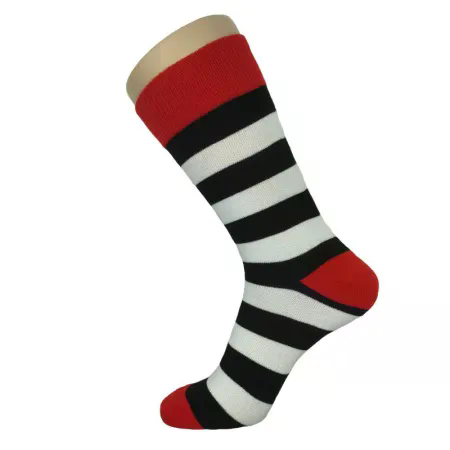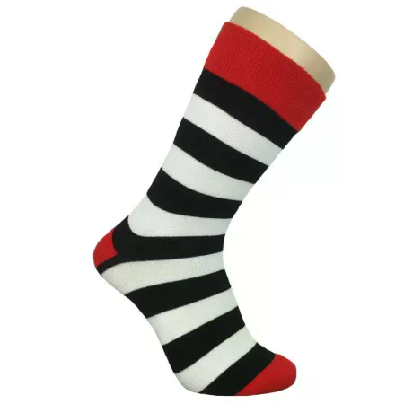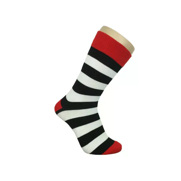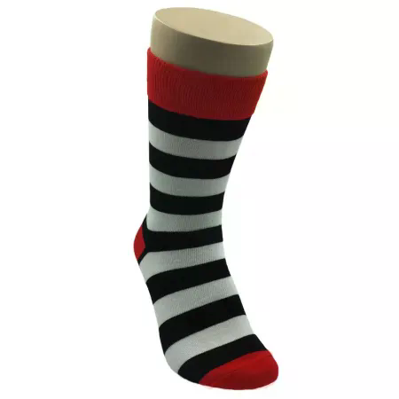 Så kig ikke længere end til vores stribede herresokker til mænd, der fås i fed rød, hvid og sort.