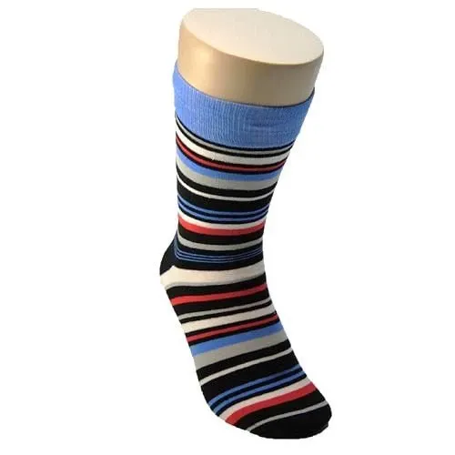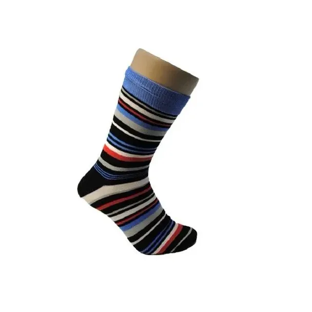 Strømperne er tilgængelige i størrelse 39-46. Disse flotte og farverige strømper er designet med striber i blå, grå, rød, hvid og sort farve.
