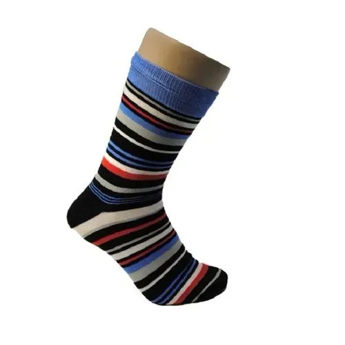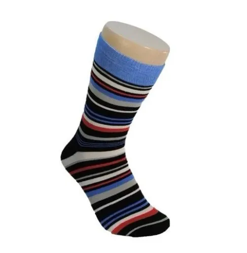 Detaljer og fordele: - Farve og mønster: Grå-blå striber i afdæmpede toner - Længde: Klassisk crew-længde til midt på læggen - Pasform: Elastisk ribkant for stabilt hold uden at klemme - Materiale: Blød, åndbar bomuldsblanding med elastan for fleksibilitet - Anvendelse: Hverdag, kontor, rejse og fritid - Målgruppe: Stribede strømper til mænd - Størrelse: størrelse 39-46